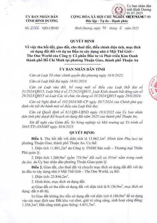 - Quyết định số 2166/QĐ-UBND ngày 30/06/2025