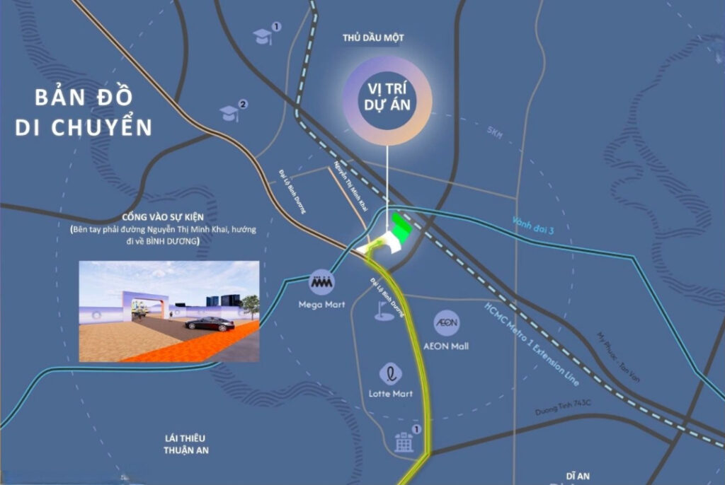 | Vị trí | Góc giao 3 tuyến đường: QL13 – Nguyễn Thị Minh Khai – Vành đai 3, Phường Thuận Giao, TP. Hồ Chí Minh. |