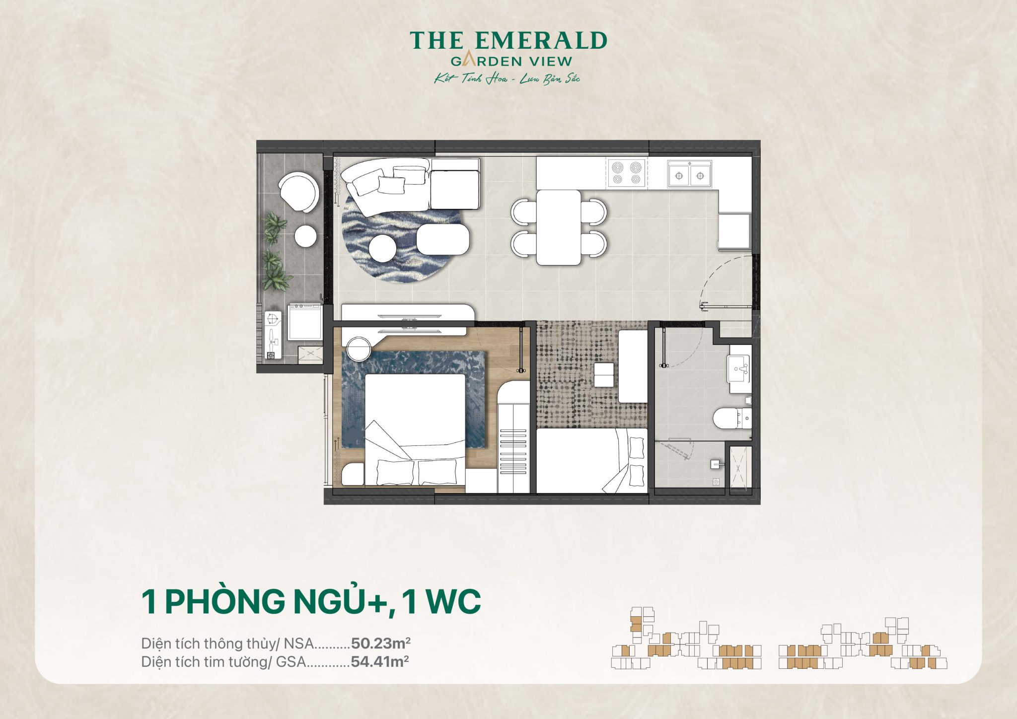 Mặt bằng The Emerald Garden View được quy hoạch gồm hai tòa tháp với tổng số khoảng 2.000 căn, mang đến sự lựa chọn phong phú cho cư dân. Các loại diện tích được bố trí linh hoạt: căn 1 phòng ngủ từ 35–48 m², căn 2 phòng ngủ khoảng 56–74 m², căn 3 phòng ngủ từ 85–100 m², cùng các sản phẩm thương mại như shophouse, căn hộ dịch vụ, condotel đáp ứng đa dạng nhu cầu ở và kinh doanh.. Dưới đây chúng tôi sẽ chia sẻ thông tin chi tiết từng loại hình cho quý khách tham khảo