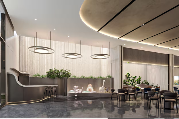Sảnh chung ở tầng trệt là không gian của Khu vực trưng bày mô hình kiến trúc; Lễ tân; Sảnh sự kiện; Phòng Media, Signature Lounge, Pantry, Kid room…